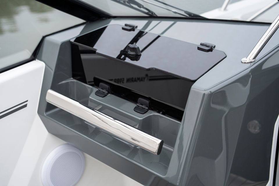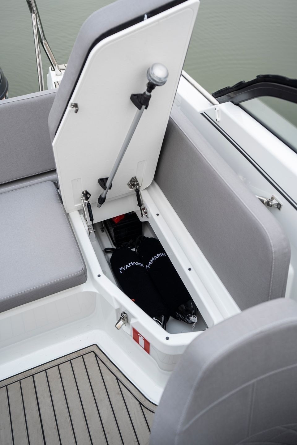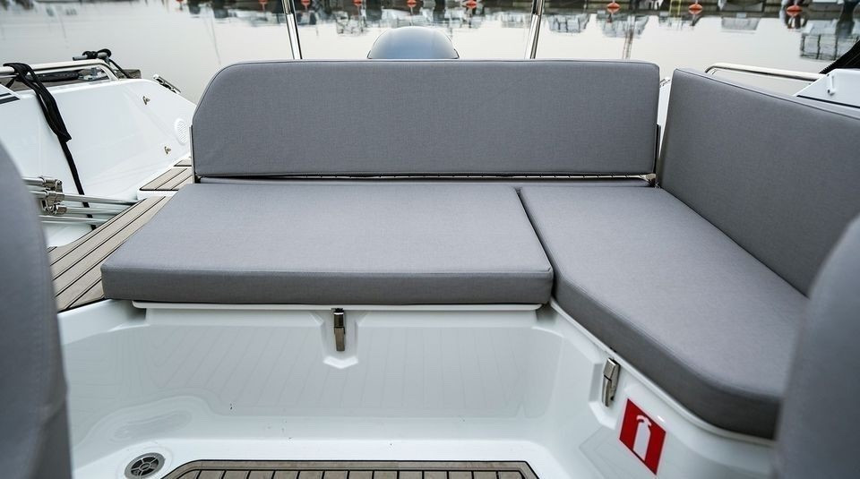 Bak finnes en stor sofa med vippbar rygg som med et enkelt håndgrep gjøres om til en komfortabel solseng (standard utstyr). Setene til kaptein og passasjer kan svinges og skaper et sosialt område hvor man kan slappe av på fjorden som i havn.