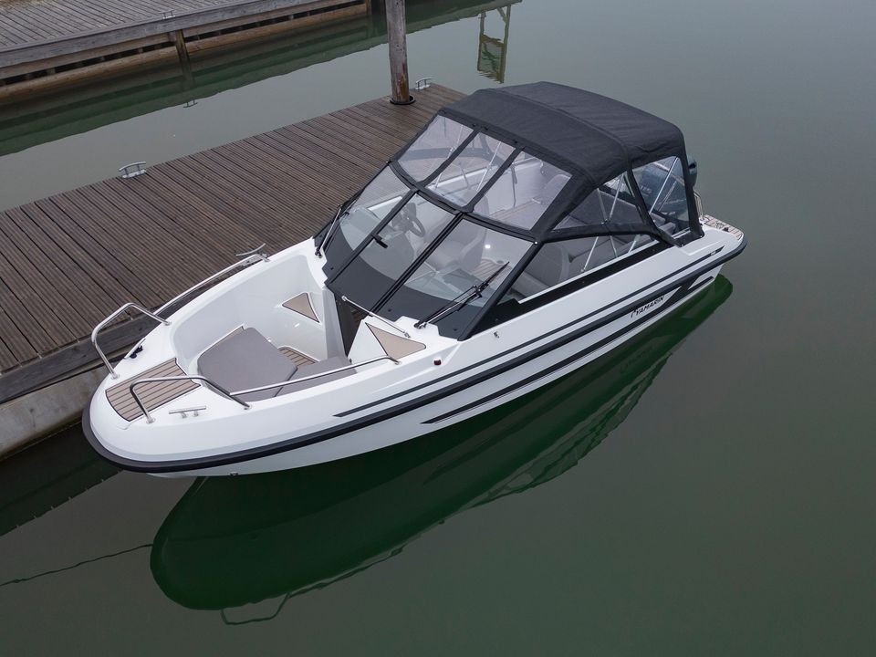 Vindskjermen er utformet for å gi god beskyttelse for vind og sjøsprøyt, med fin skjerming også for de som sitter i aktersofaen. Vindskjermen strekker seg akterover langs sidene og høyden er optimalisert ved hjelp av vindstrømberegninger.